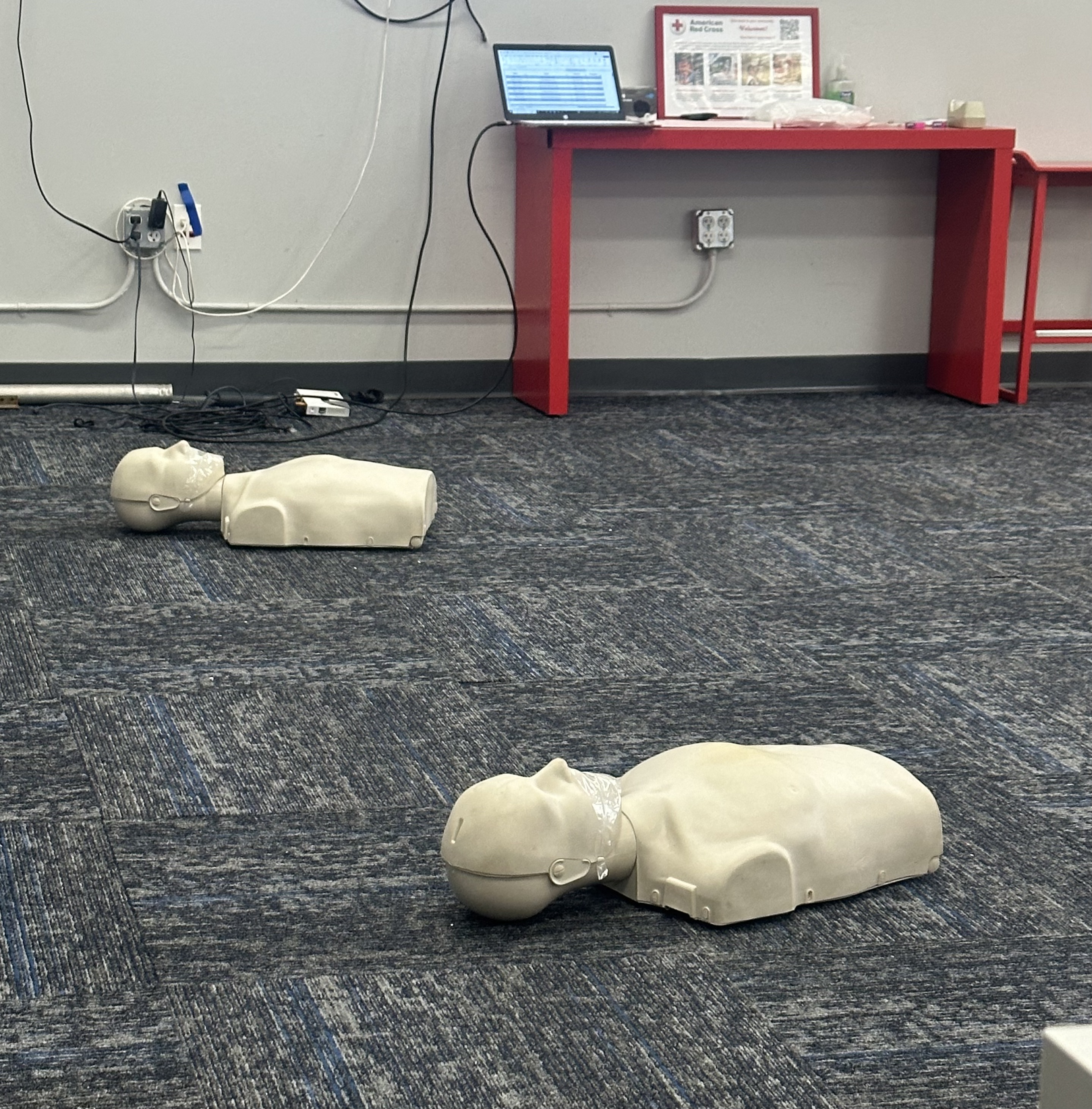 After that, the instructor briefly discussed the material we would learn. She warned that if you save someone’s life, don’t let them repay you with, say, a steak dinner. This could lead to a lawsuit. Courtney grabbed the pocket journal I brought to take notes and wrote, “Do not accept steak dinners.” I had to bite my tongue to keep from laughing.